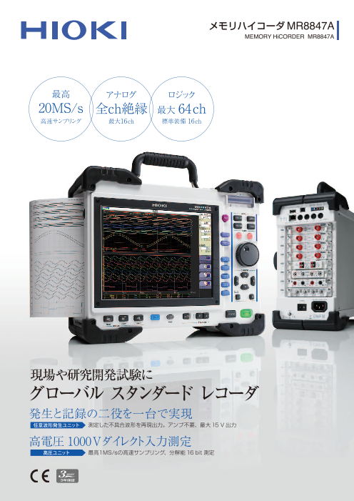 多彩な測定を実現するハイスペック&ハイクオリティ。 ・サンプリング速度20MS/sec ・全チャネル絶縁入力 ・A4サイズプリンタ搭載 ・豊富なユニット ・ロジック入力 64ch+ アナログ10ch ・大容量512MW( MR8847-53)...