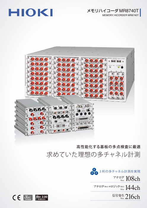 自動車などAI技術が進む中、求められるのは一度に大量の情報を同時に処理する技術、そして安心、安全。MR8740Tは多チャネル同時サンプリング測定でお客様の検査技術を支えます。 ■コンパクトにMax.108ch 測定 MR8740Tは従来比2倍とな...