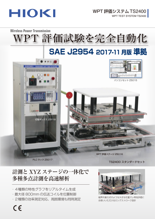 WPTの解析に必要な3つの機能を完全自動化。SAE J2954 2017-11月版に準拠しています。 1. 4種類の特性グラフを検査中でも自動生成 2. 自動測定、自動データ収集 3. 最大径800mmの大型伝送コイルを自動制御