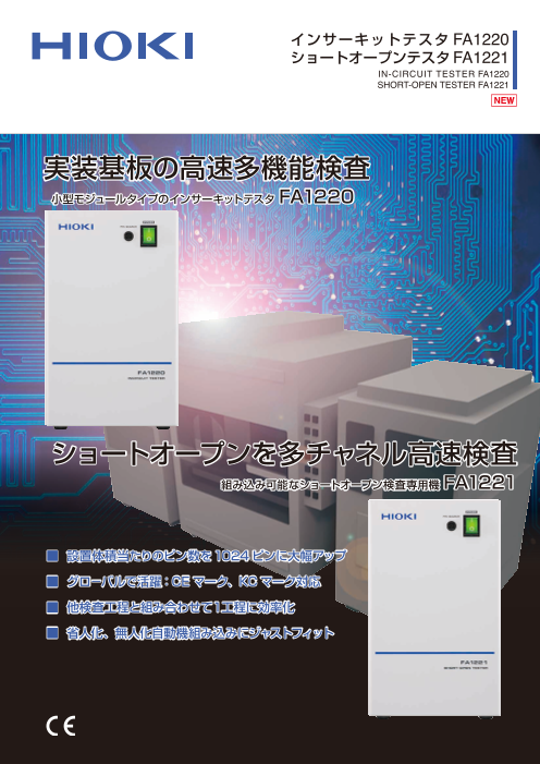実装基板の高速多機能検査に適した小型モジュールタイプのインサーキットテスタ FA1220と、多チャネル高速検査が可能なショートオープンテスタ FA1221が登場。卓上型1BOXに機能を集約し、装置組込みを容易に実現。ともに使い易いユーザインタフェースと高...