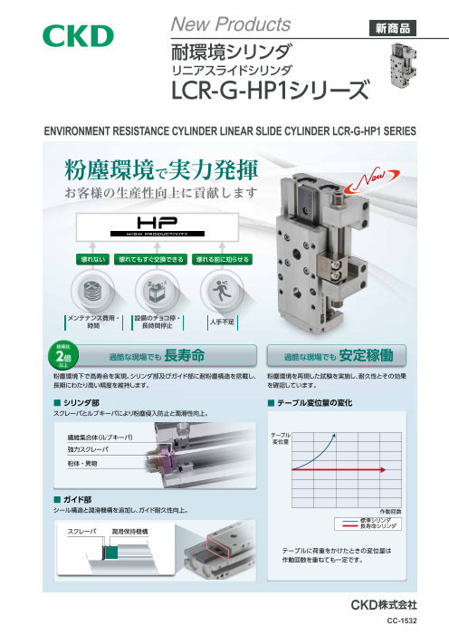 徹底した軽量化と設計自由度が高い左右対称構造な「LCRシリーズ」にG-HP1※のオプションが追加しました。※G-HP1:耐環境シリンダ。シリンダ部及びガイド部に耐粉塵構造を搭...