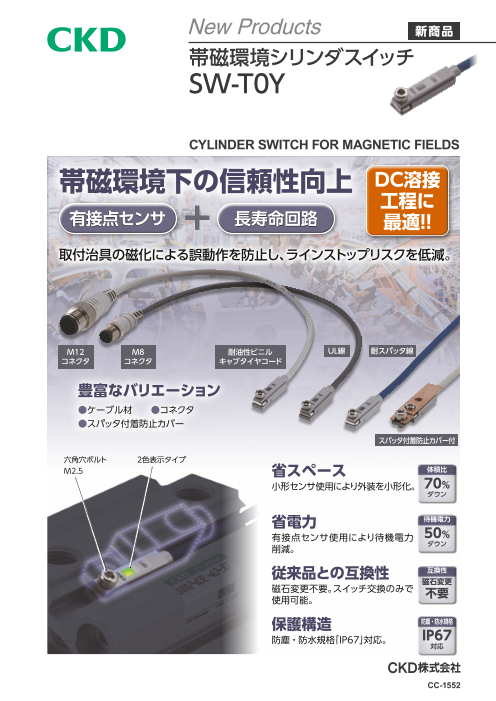 CKDエアシリンダ※に取付け可能な、シリンダスイッチです。有接点センサ+長寿命回路にし、帯磁石環境下の信頼性向上しました。※一部取付出来ないシリンダ御座います...