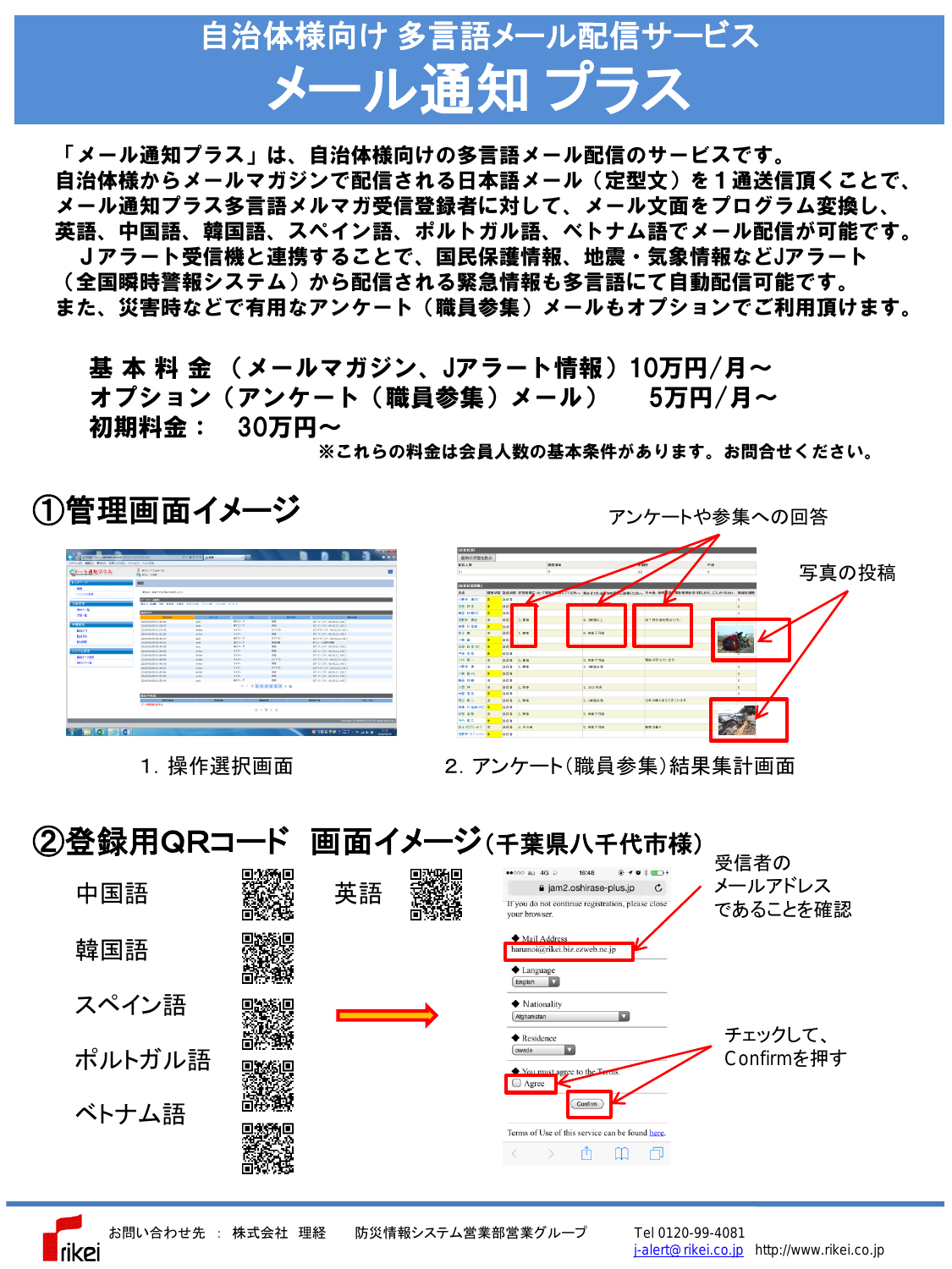 「メール通知プラス」は、自治体様向けの多言語メール配信のサービスです。自治体様からメールマガジンで配信される日本語メール(定型文)を1通送信頂くことで、メール通知プラス多言語メルマガ受信登録者に対して、メール文面をプログラム変換し、英語、中国...