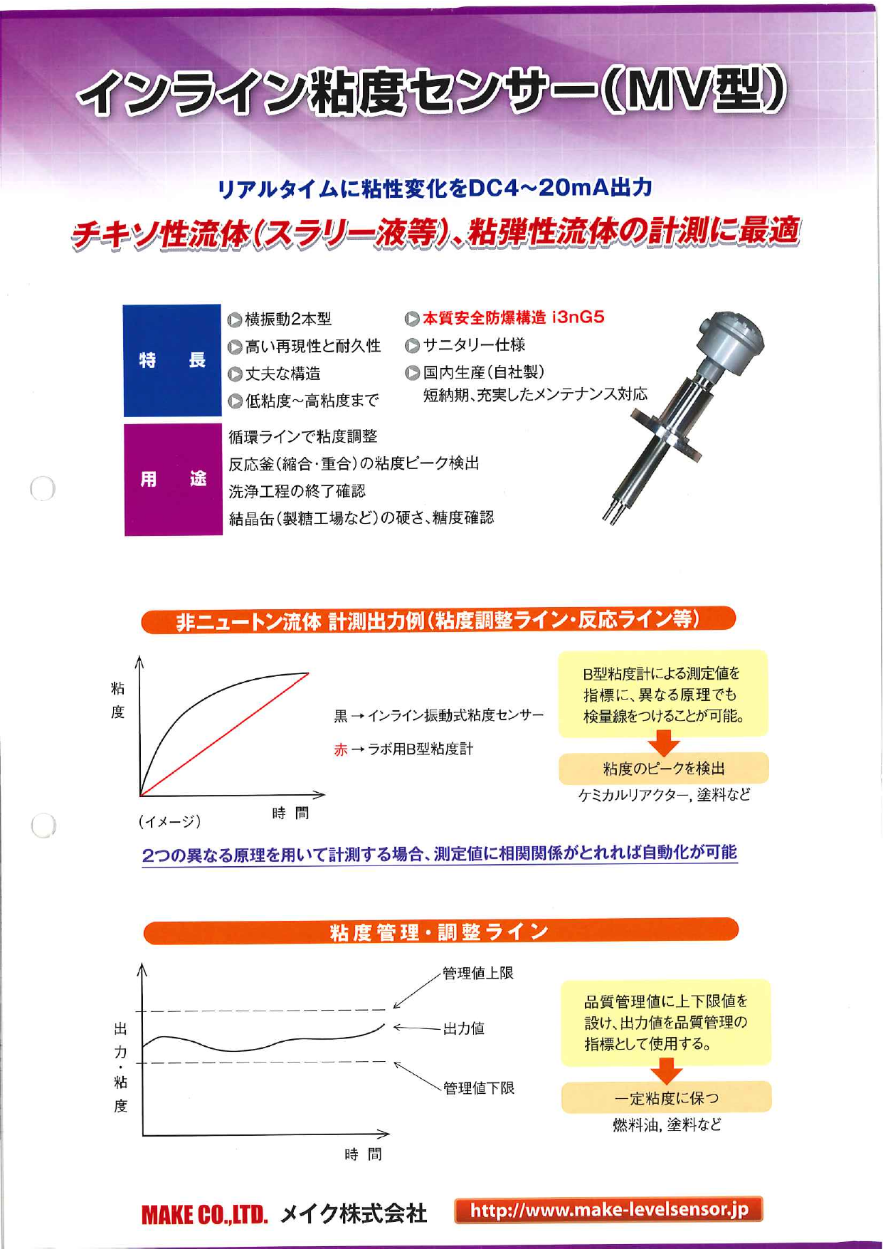 インライン粘度センサー MV型 カタログのご案内です。
