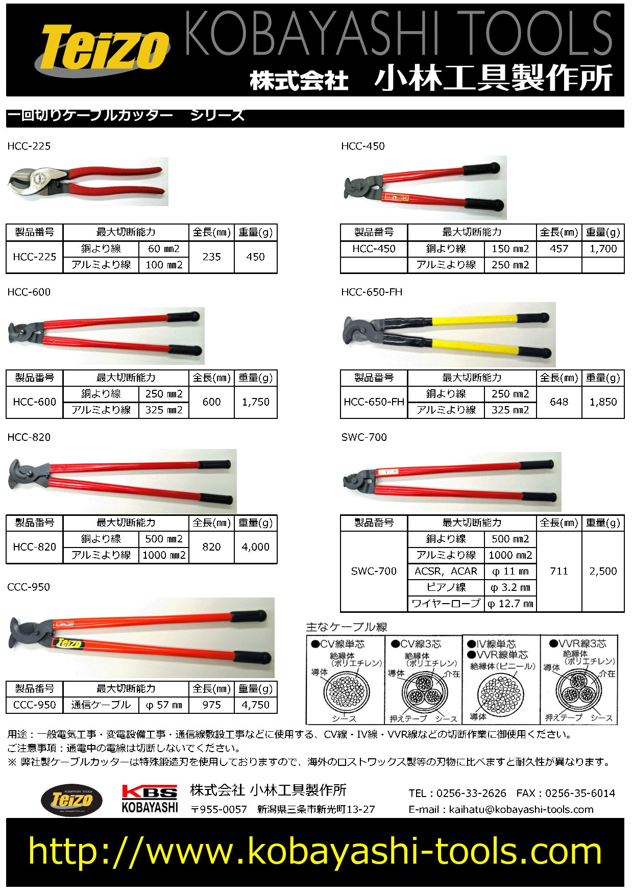 ケーブルカッター カタログのダウンロード (1.6Mb)