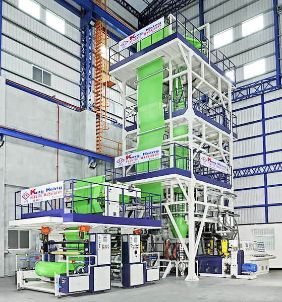 高速・高効率・高稼働率のLDPE3層共押出インフレーションフィルム成形機。130カ国以...